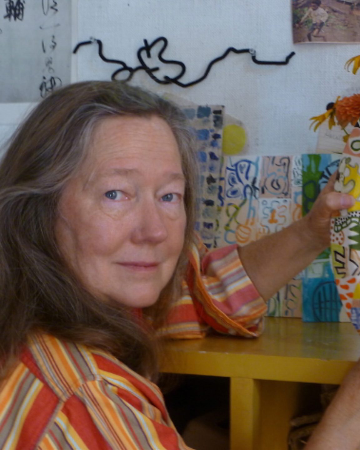 Holly Hughes is a frequent Ranch faculty member and professor emeritus of painting at Rhode Island School of Design. Having exhibited nationally and internationally, Hughes’s painting has been greatly influenced by both ceramic and printmaking practice and research. She loves “Salon Style” installations—the mixing of these genres on the wall—such as her BLAZON created for the Dorsky Museum. Her most recent exhibit was “Salad Days” at Pamela Salisbury Gallery in 2024.