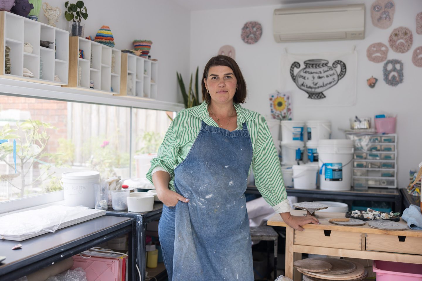 Ebony Russell is an Australian artist who uses an unorthodox approach to construct ceramic sculptures. Her unique technique was developed out of an interest in gendered aesthetics, labour and traditional craft practices where Russell methodically pipes porcelain in series of intricate layers to build gravity-defying forms. Challenging the traditional making processes of decorative vessels; in her works the decoration becomes the structure, and the boundaries between the two are erased. Exploring established perceptions of cultural and artistic practices that were once exclusively coded as feminine and thus insignificant, Russell’s work celebrates the decorative, promiscuous aesthetics and politics of purity; the superficial, excess and delight – with pleasure. Ebony Russell completed a Bachelor of Applied Arts (Honours) at Monash University in 2003 and in 2019 graduated from The National Art School, Sydney with a Masters of Fine Art. Russell has won many awards including the Franz International Rising Star Award in 2018 and the Meroogal Women’s Art Prize, 2022. More recently in 2023, Russell received the Highly Commended Award in the International Young Masters Maylis Grand Ceramics Art Prize, London. Major exhibitions include Homo Faber, Venice 2024, Teetering on the Brink, Claire Oliver Gallery, Harlem New York 2024, Young Masters Art Prize, London 2023, 1001 Remarkable Objects: The Powerhouse Museum, Sydney 2023, Think Pinker, Gavlak Gallery Los Angeles 2023, SABOTAJE ESTEìTICO, Yusto Giner Gallery Spain 2022, Halcyon Days, Modern Eden Gallery San Francisco 2022, Clay Dynasty: The Powerhouse Museum 2022.