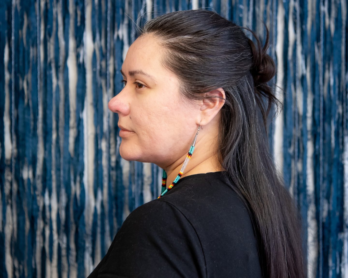 Chelsea Bighorn is a textile artist who was born and raised in Tempe, AZ and is Lakota, Dakota, Shoshone -Paiute, and European. She graduated from The Institute of American Indian Arts in 2021 with a BFA in Studio Arts. Bighorn received her MFA in Fiber and Material Studies from School of The Art Institute of Chicago. She currently resides in Chicago, IL where she is an artist-in-residence with Chicago Artist Coalition.