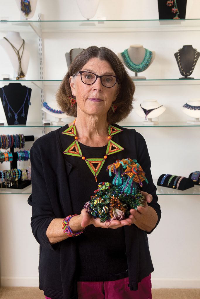 Eleanor Anderson works predominantly in textiles but also enjoys exploring other media such as printmaking, glass, metal, and clay. Anderson has been awarded residencies at Pilchuck School of Glass, and Haystack Mountain School of Craft. She also received the Windgate Fellowship to attend Vermont Studio Center. She has taught workshops nationwide. She lives in Portland, Maine.