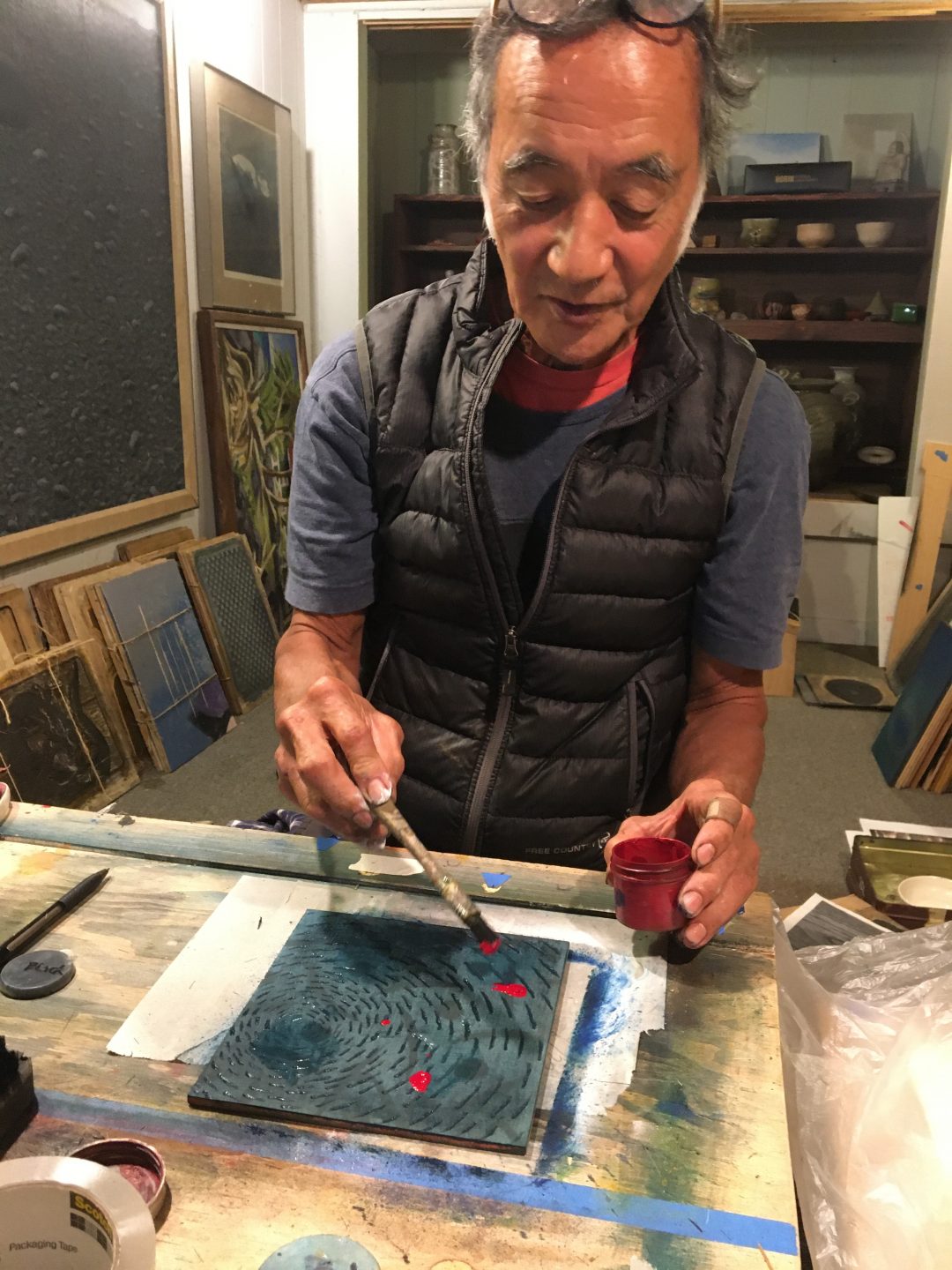 Koichi Yamamoto is an artist who merges the traditional and contemporary by creating unique and innovative approaches to the language of printmaking, with work ranging from meticulous copper engravings to large-scale monotypes and kites. He studied at the Pacific Northwest College of Art in Portland, OR, then relocated to Krakow, Poland and Bratislava Academy of Fine Arts in Slovakia to learn about copper engravings. He completed his MFA at the University of Alberta, Canada. He has taught at Utah State University and the University of Delaware, and is currently a professor at the University of Tennessee in Knoxville.