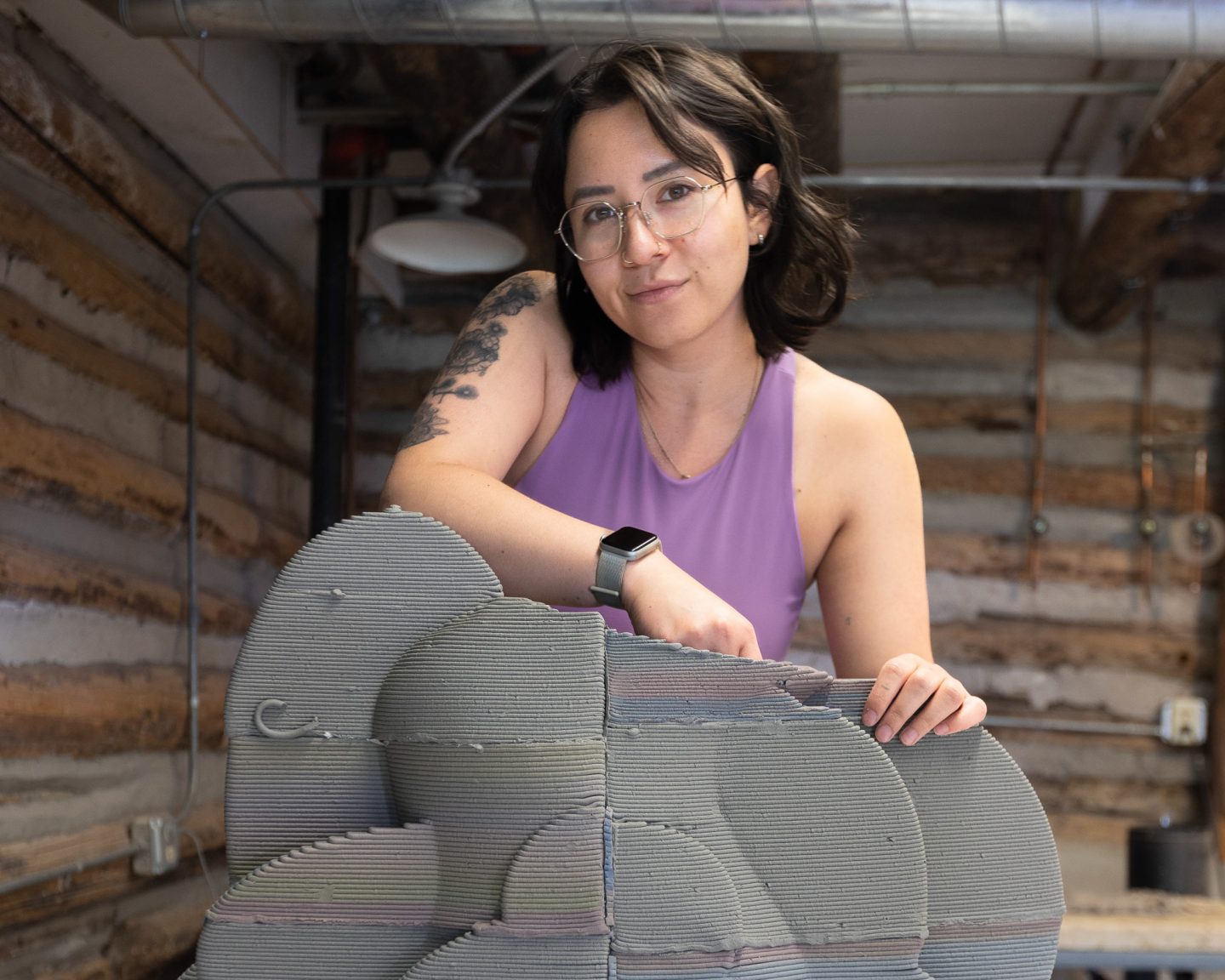 Leah Aegerter is a sculptor working with a combination of digital fabrication techniques and traditional processes in wood and paper to investigate her relationship to geology and deep time. Leah received a BFA in Sculpture from the Rhode Island School of Design, and was named an Aspen Art Museum Artist Fellow in 2022.