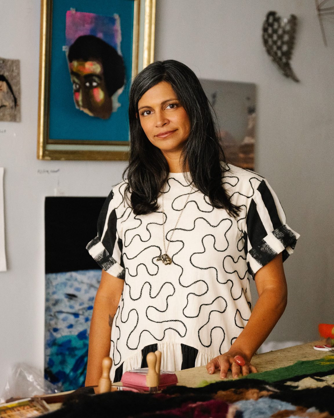 Born in Kingston, Jamaica, and raised in Montclair, NJ, Shoshanna Weinberger earned an MFA from the Yale School of Art. Living and working in Newark, NJ, since 2006, where her studio practice explores her Afro-Caribbean-American lineage through mixed media abstraction. Weinberger is the recipient of numerous awards, including the 2014 Joan Mitchell Foundation Painters and Sculptors Grant, the 2020 Newark Artist Accelerator Grant (Andy Warhol Foundation), the 2022 Nancy Graves Foundation for Visual Artists Grant, and the 2023–2024 NJ Futures Artist Fellowship (The Center for Cultural Power & the Geraldine R. Dodge Foundation). Highlight exhibition venues include: The Bronx Museum; The Newark Museum of Art; and The National Gallery of Jamaica. She has also participated in artist residencies such as the Joan Mitchell Center and McColl Center.