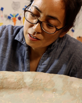 Adriana Barrios is a queer, biracial, Latina artist who grew up on the coastal borderlands of San Diego, CA. Barrios uses printmaking, paper making, video, and installation to record and respond to the environmental changes happening along the California coastline due to climate change. Barrios has participated in artist residencies at the Pilchuck Glass School, Milwaukee Institute of Art and Design, and Santa Reparata International School of Art.