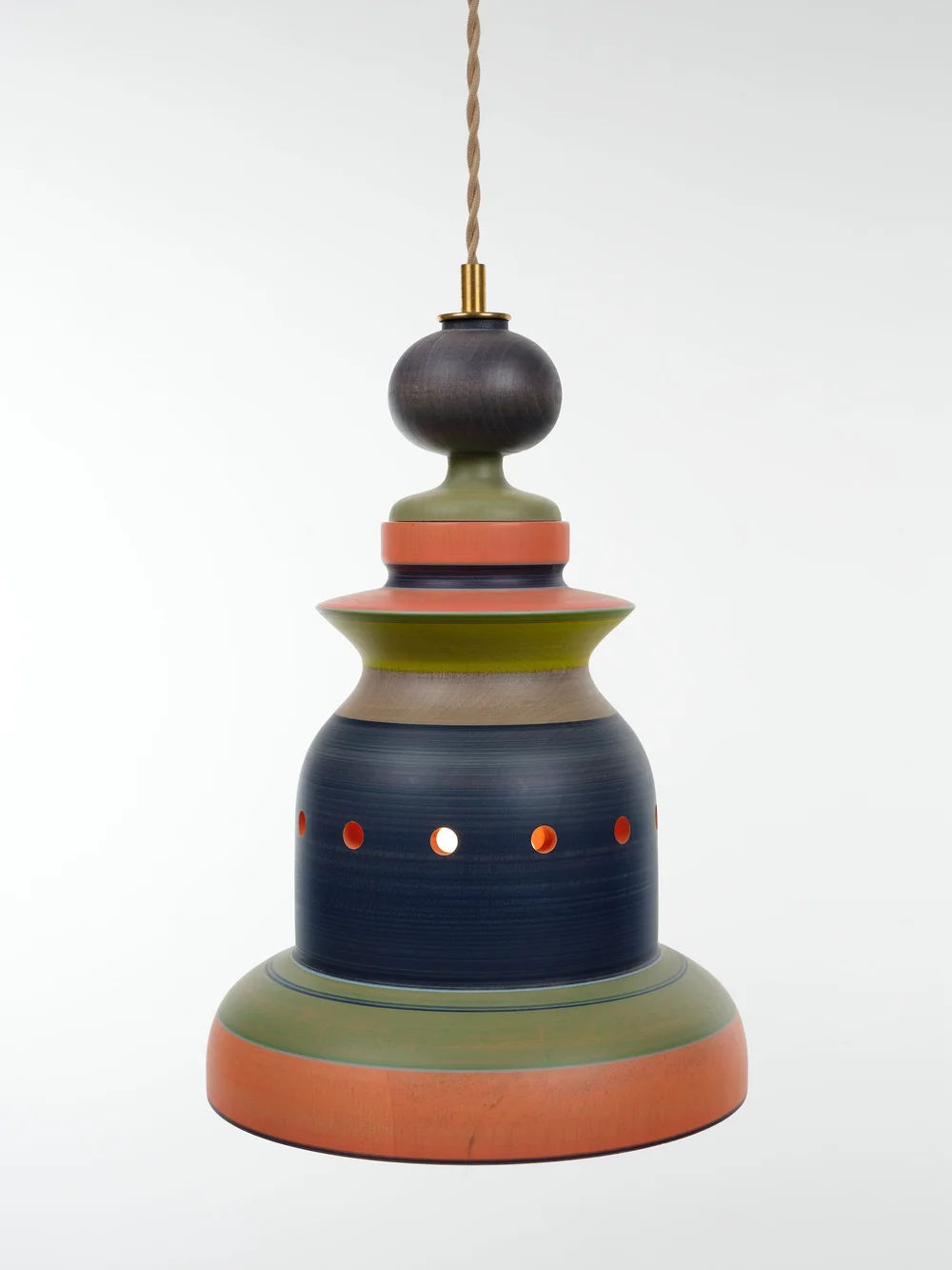 Torbjörn Vejvi (b. 1972), raised on a self-sufficient farm in Southern Sweden, brings a tactile sensibility to his sculptural practice, obliquely shaped by a childhood of raising sheep and weaving. Over the past decade, he’s shifted from abstract sculpture to functional, hand-turned wooden lamps and candleholders; as with his sculptural practice, he transforms everyday materials through meticulous craftsmanship and vibrant color. Learn more.