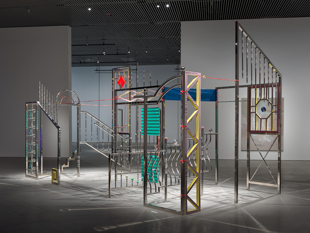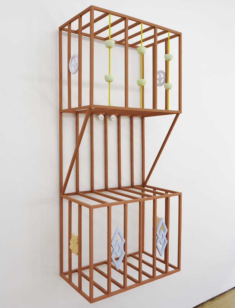Anne Wu makes sculptures and installations that draw from the material culture and architectural vernacular of Chinese immigrant neighborhoods. Referencing familiar structures, such as doors, windows, stairs, and railings, her work riffs on existing built environments through fragmentation, abstraction, and rearticulation.