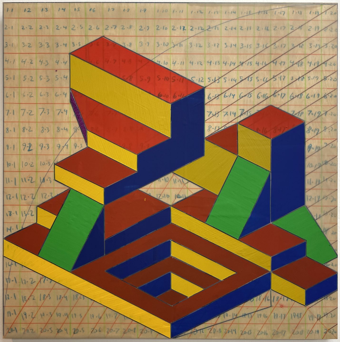Mike Picos (b. 1991, New York City) is a painter whose work explores education, personal history, and memory through pattern, abstraction, and found imagery. Drawing inspiration from educational toys, puzzles, and video games, he examines the interplay between painting and other image-making systems that shape our perception of the world.