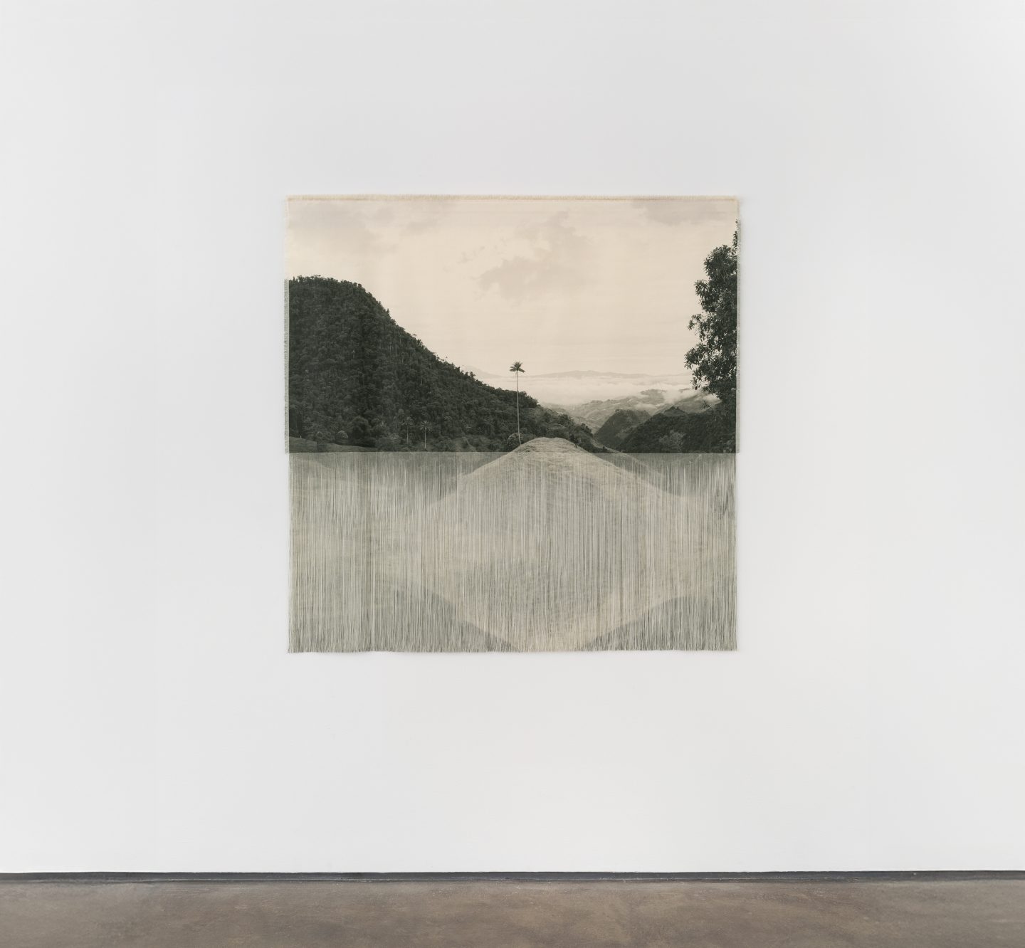 In her work González references to the 18th-century naturalist Alexander von Humboldt and his exploration of the interconnectedness of all living systems. Her Devastations series features textiles onto which the artist prints photographs of Colombia’s vulnerable environments which she then partially unravels by hand. The works preserve these spaces as sites of power, abundance, and renewal while referencing the slow disappearance of ancient ecologies.