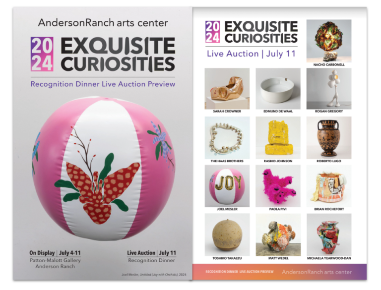 The Recognition Dinner Live Auction Preview will be on display and open to the public in the Anderson Ranch Arts Center Patton-Malott Gallery from July 4th – July 11th, 2024.