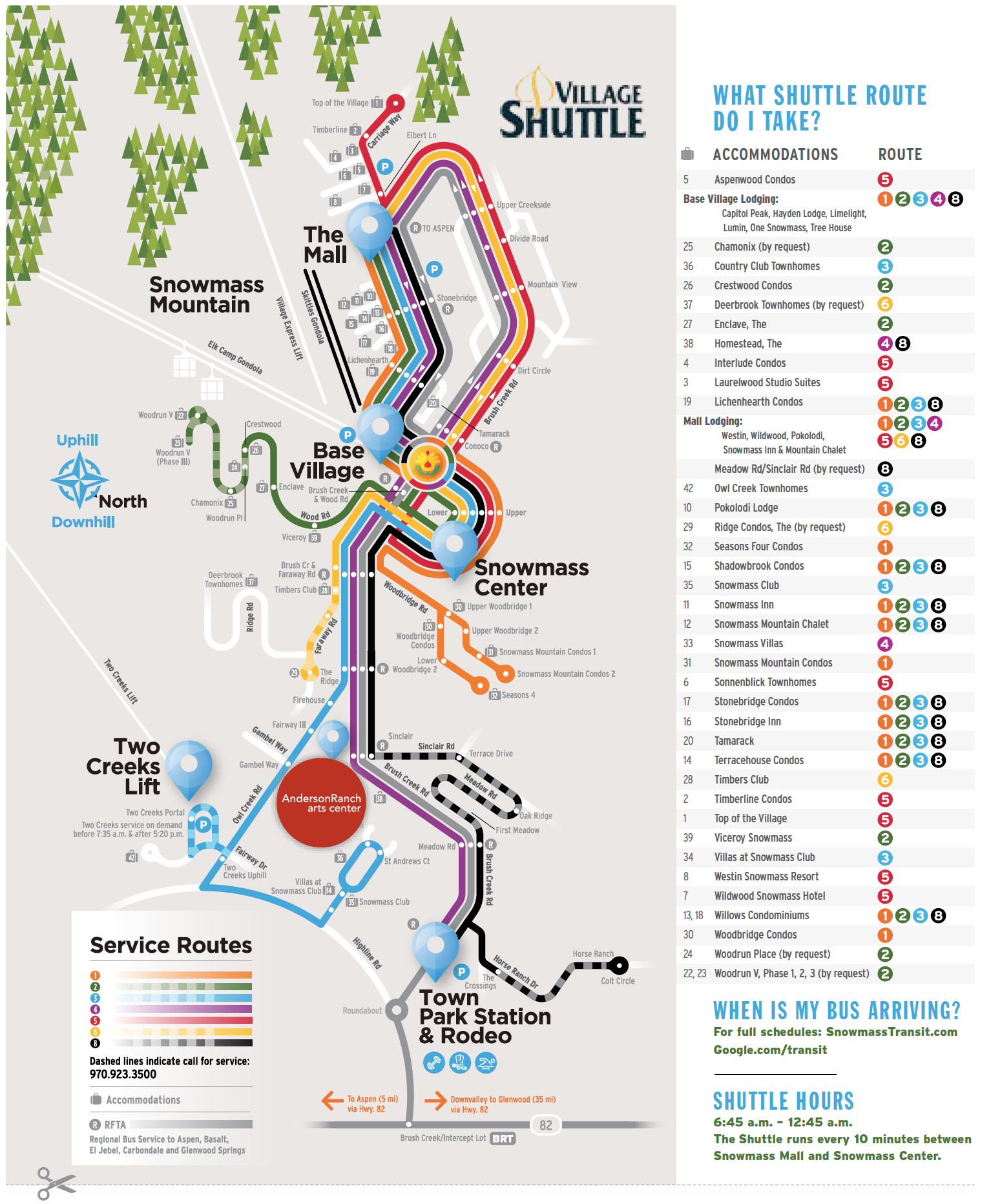 Snowmass Village Shuttle times and departure locations are subject to change without notice.